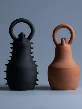 Càntirs en terre rouge, tournage, enfumage 1020°