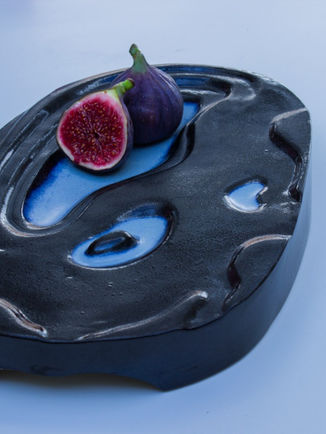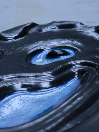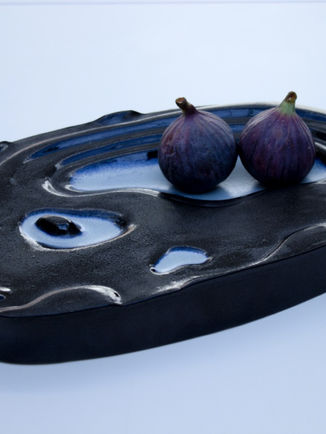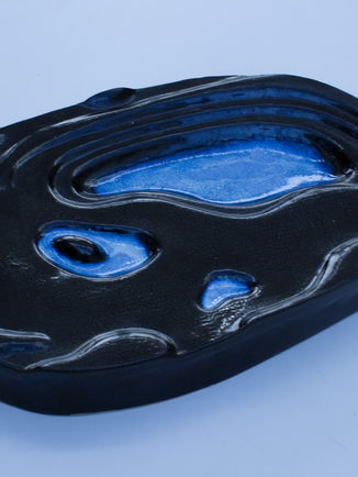 Plat en grès estampé, émaillé, 1260°